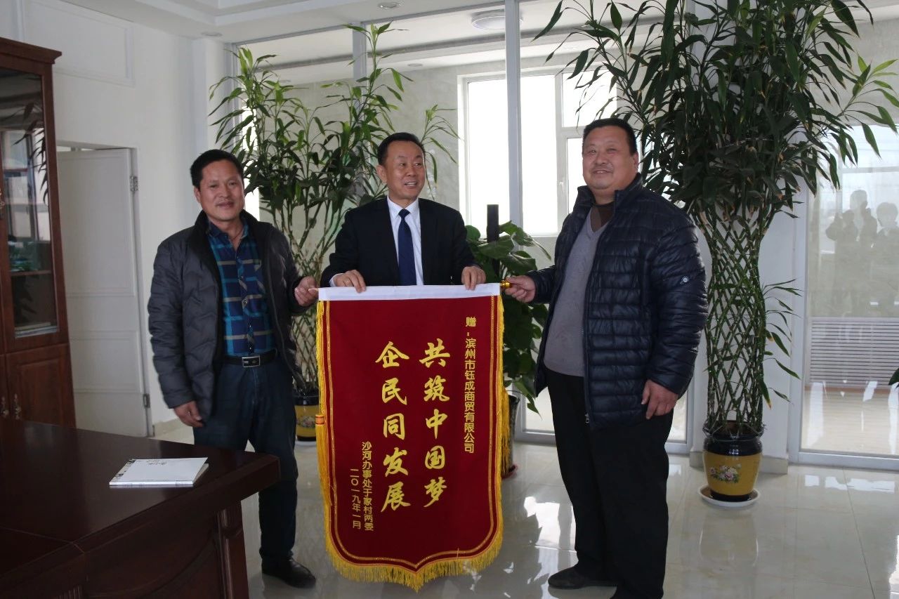 1月30日,于家村“兩委”將一面寫著“企民同發(fā)展 共筑中國(guó)夢(mèng)”字樣的錦旗送到了濱州鈺城商貿(mào)有限公司,感謝企業(yè)一年來(lái)對(duì)于家村發(fā)展所做的貢獻(xiàn),這也是我辦“村企共建”的典型事例。通過(guò)村企共建,有效的推進(jìn)了企業(yè)和農(nóng)村和諧共處、相互促進(jìn)、共同提高。